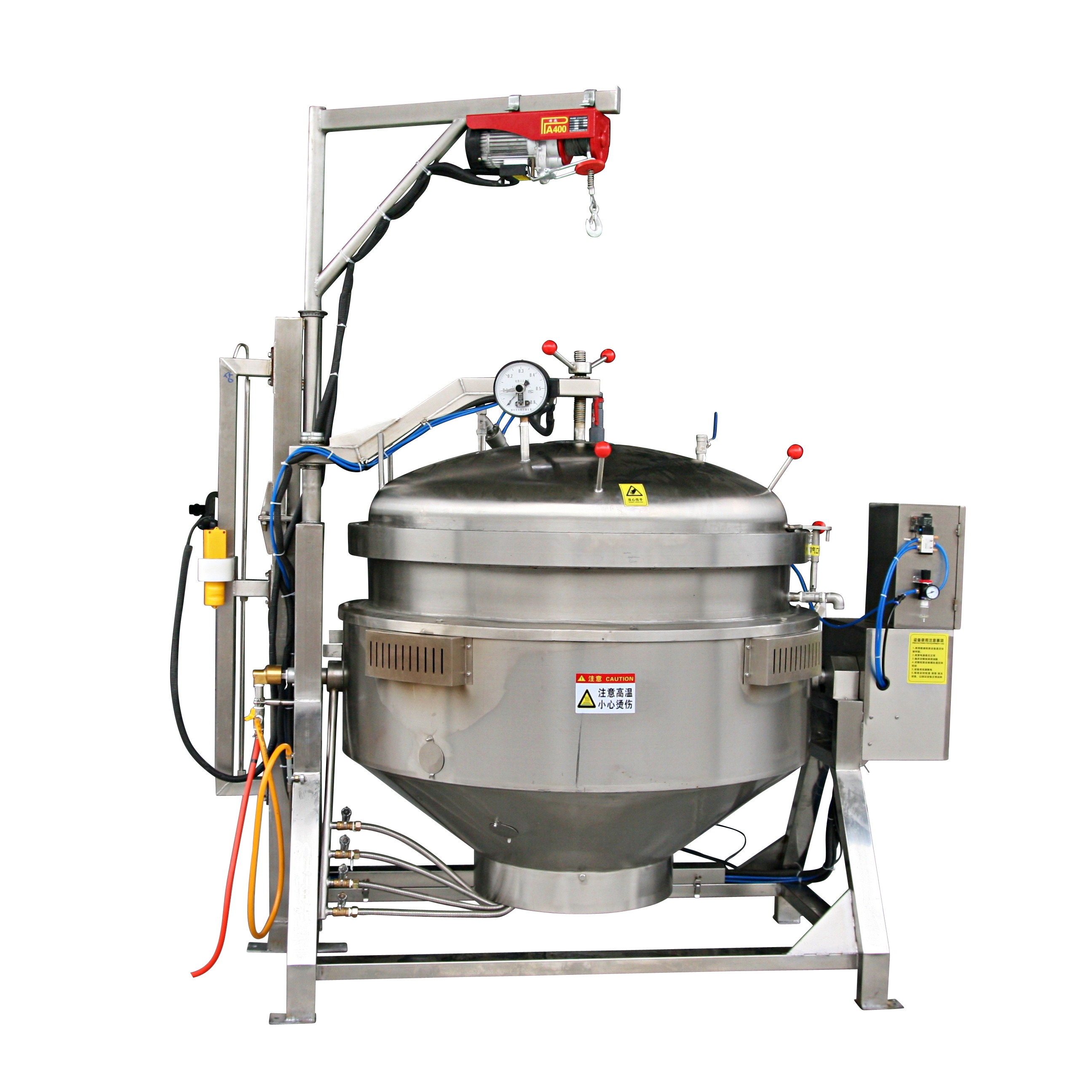 압력을 가두어 식품을 조리하는 방식의 압력솥으로 호이스트, 소쿠리등을 옵션으로 설치가능하며 스텐레스 재질로 제작
