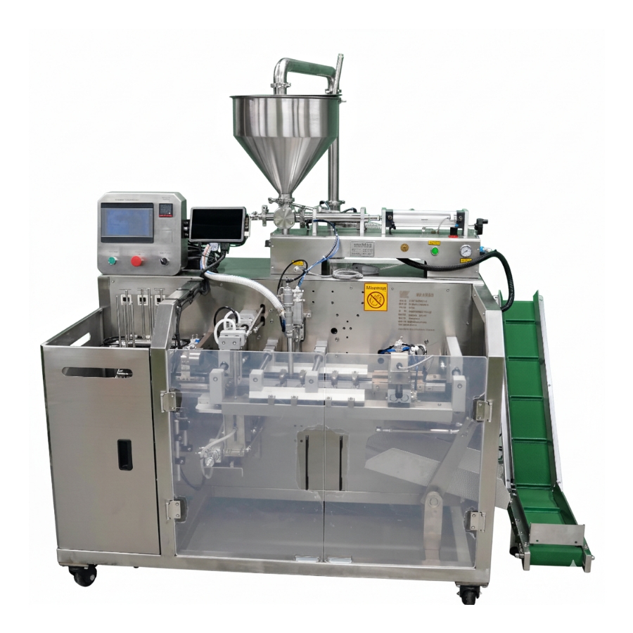 직선형 액상포장기계는 PLC로 콘트롤로 작동 되는 수형형 포장기계로 각종 음료, 주스, 케첩, 세제 등 액체 또는 반유체 및 다양한 제형의 제품의 충진포장에 적합하며 봉지 형태로 포장됩니다.